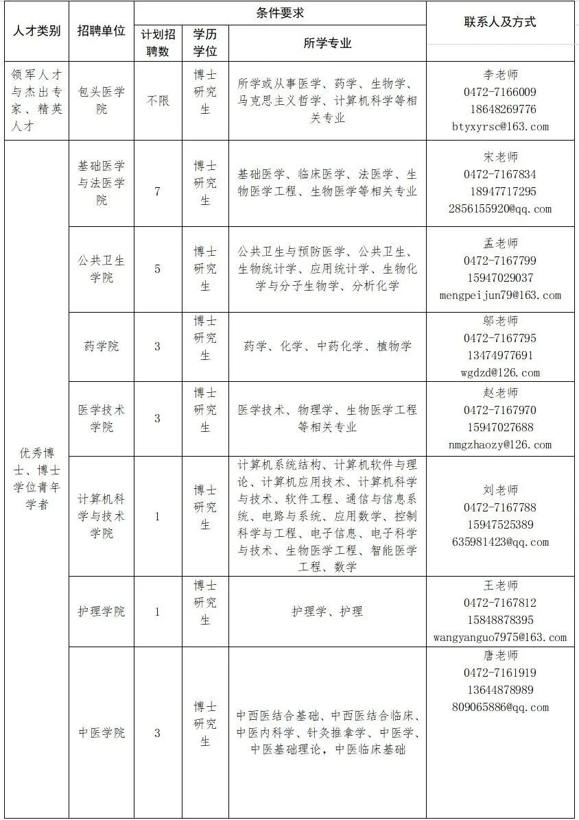 包头医学院2026年上半年高层次人才需求计划表